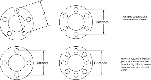 Common bolt patterns include 4x100, 5x114.3, 6x135, etc.