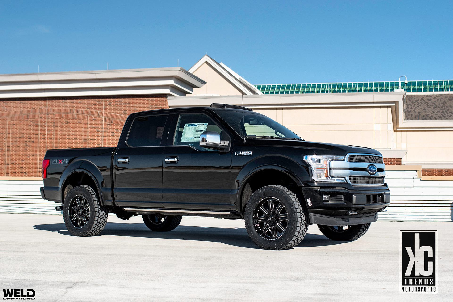 For many, the Ford F150 is the rugged workhorse that moves SME's all across America. It features a large cargo bed, room for more than three people and power to tow pretty much anything you might need to. It features a well-known 5.0L Ti-VCT V8 Engine, delivering 395 horsepower and 400 lb.-ft. of torque, courtesy of twin independent variable cam timing (Ti-VCT), as well as the Ford port-fuel and direct-injection (PFDI) system with two injectors per cylinder — one in the air intake port, another inside the cylinder — to increase power and efficiency. The legendary engine is coupled with a 10-speed transmission, allowing for impressive power delivery and great towing performance. Furthermore, the F150 can be eco-friendly, as it offers a CNG/Propane Gaseous Engine Prep Package for conversion to compressed natural gas (CNG) or propane autogas. Not bad for a workhorse that can be seen in various roles all across the country, right? This particular black Ford F150 Platinum comes with a set of WELD Chasm forged offroad wheels. These wheels more than meet the particular requirements set forth by the truck, giving the owner a robust offroad wheel that not only performs well but looks good as well. The wheel is available through authorized WELD Wheels dealerships all across the nation. If you need any help finding a dealer, please don't hesitate to contact us right away. Our sales team will help you with any aspect of ordering a set of WELD Wheels, whether it be fitment, sizes, weights or similar. You can grab a good look at this black Ford F150 Platinum with WELD Chasm wheels right below.