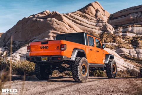 Punk'n Mettalic Orange Jeep Gladiator - WELD Ledge Offroad Beadlock Wheels - Satin Black w Orange Ring